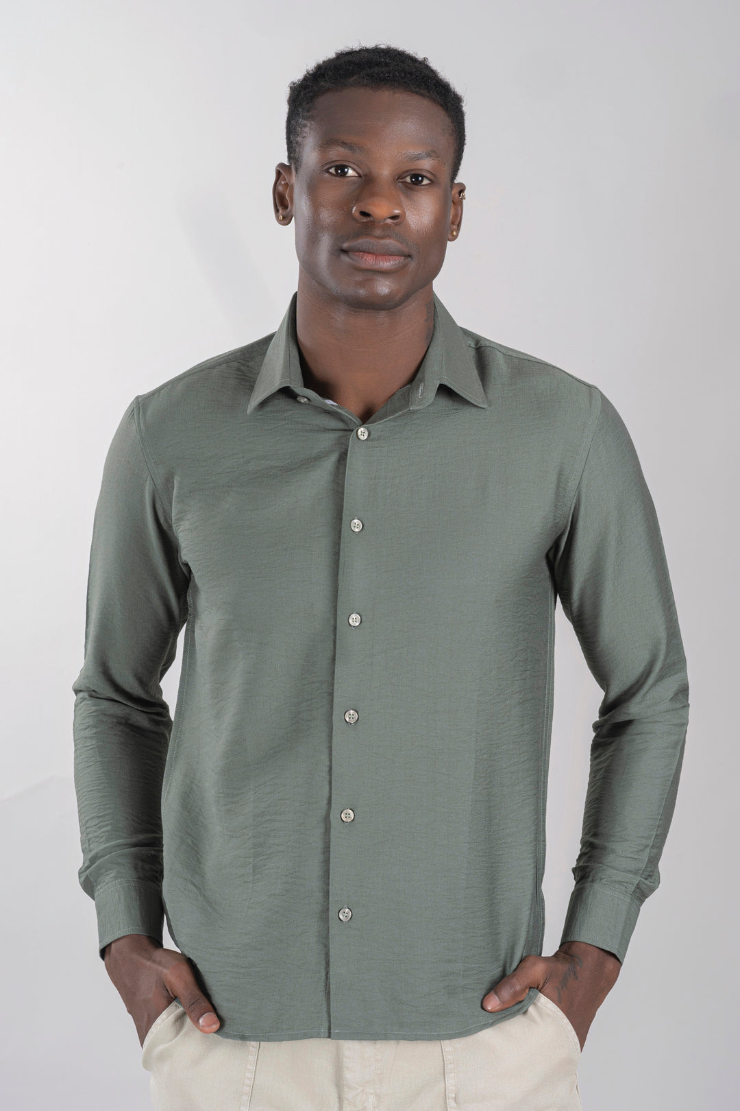 If you love earth tones, then this is the plain green shirt for you. This shirt combines style and comfort with ease, hence it can be worn to work and for play. You can combine it with beige trousers or denim for a well-balanced, trendy outfit.