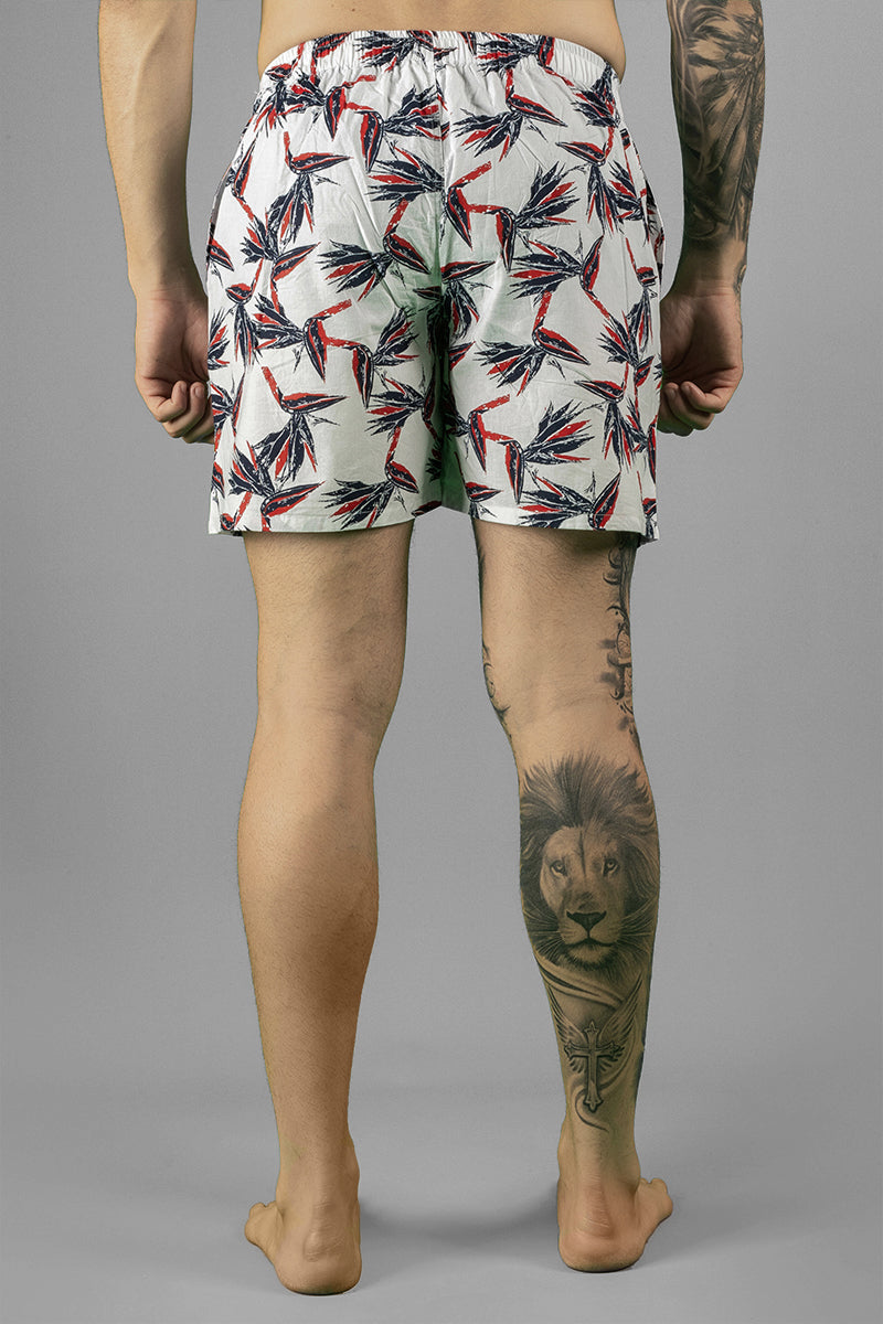 Elevate your comfort with these white men's boxers, crafted from 100% cotton. Featuring an elasticated waistband, woven fabric, and printed pattern, they are perfect for leisure wear.