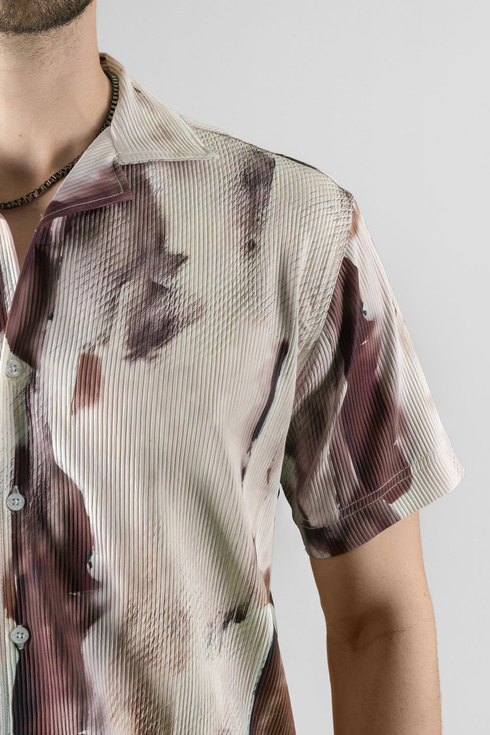 Add a touch of sophistication to your casual look with this brown men's shirt. Crafted from 100% polyester, featuring a regular fit, half sleeves, and a cuban collar, it's perfect for casual wear.