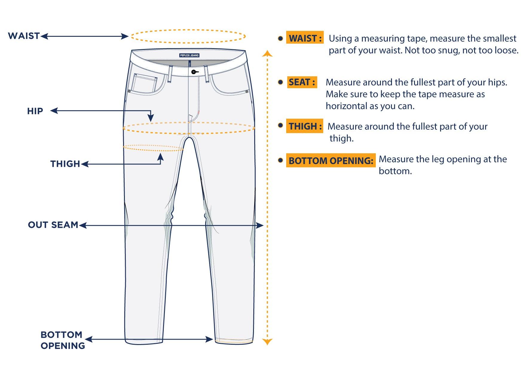 SIZE | WAIST | THIGH | HIP | LEG OPENING | OUT SEAM |